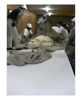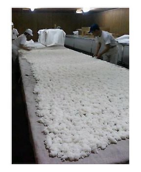 ほんで昨日ワシが麹室に入ったら、丁度蒸し米を床に広げて、粉状の「種麹」(たねこうじ)っちゅう麹菌を振りかけた後やったがよ。この作業を「種つけ」ゆうがやき。ちなみに写真の原料米は、酒造好適米の最高峰「山田錦」っちゅう米を、精米歩合40%まで磨いたもんながぜよ。「種つけ」後は、積み上げられて布でおおって保温され、麹菌の菌糸の発育を待つがやき。こちらも、立派な麹に、どうぞ育っとうせよ。