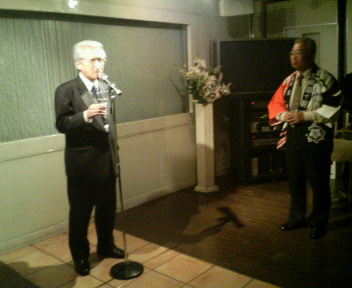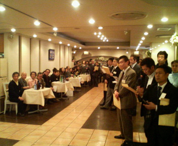 その後の「夜の部」も、大体おんなじような流れやき詳細は省くけんど、「昼の部」以上のご参加者で、会場は大混雑の中で大盛り上がりやったがぜよ!ご来賓のご祝辞は、高知県東京事務所の田中所長、乾杯のご発声は、有人宇宙飛行システム(株)の常務さん、中締めのご挨拶は、宇宙酒のアイデアの産みの親、ヒワサキコンピュータシステム(株)の日和崎社長やったがやき。