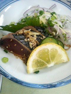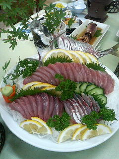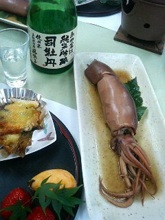 久々の「青岬」のお料理は、女将さんの手作りの愛情と地元の新鮮な食材が満載やって、やっぱしこぢゃんとおいしいがやき。鰹のタタキ、イカの丸ごと煮、お刺身盛り合わせ・・・。「司牡丹・永田農法〈土佐清水産〉風鳴子」(純米吟醸酒)と「司牡丹・土佐宇宙酒〈2007〉」(純米吟醸酒)を飲みもって語り合やぁ、まっこと杯もお箸も進むこと、進むこと!