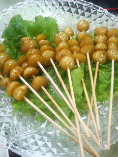 さらにシメにゃあ、芯まで甘い永田農法の芳香パインと、小イモを半分に切ってジャガバタにして串にさした、「小イモの串ジャガバタ」が登場。この串にさした姿もカワイイけんど、これがまたバカうま!永田先生いわく、このジャガイモを、是非これから土佐清水で栽培しましょうとのことやったき、近いうちに土佐清水の名物になって、あちこちで、このカワイイ「小イモの串ジャガバタ」が売られ、観光客が道々食べもって歩く姿が見られるようになるかもしれんのう!まっこと楽しみぜよ!