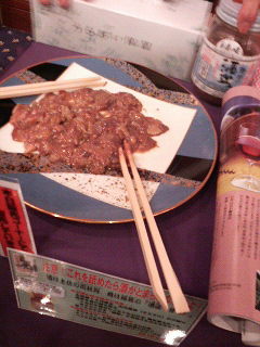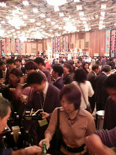 さて、開場予定時間の15時ちくと前に、「日本酒天国2007・東京大試飲会」第1部がスタート。約700名近いお客様が、ドドッと入場されたがやき。司牡丹ブースにも、お客様がドンドン来られ、16時頃にゃあ会場は大入り満員状態。特に「土佐牡丹酒」と「酒盗」の組み合わせが大人気で、第1部終了の17時にゃあ、販売コーナーの「酒盗」は売り切れになってしもうちょったがぜよ。