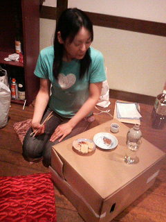 そっからは皆さん大盛り上がりの大宴会!段ボール箱のちゃぶ台に座って飲んで盛り上がったり、サスガに座が乱れてきたがやき。ほんで締め括りのお楽しみ抽選会。司牡丹の前かけや手拭いらあが当たった皆さんは、こぢゃんと大悦びやったがぜよ。