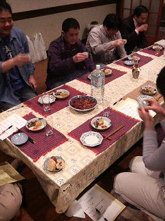 ひとまず宿泊ホテルにチェックインして、再び18時半ばあに「ふくしま屋」さんに集合。会場の2階に上がらいてもうたら、社長さんが自慢の手料理を準備されゆう真っ最中やったがぜよ。