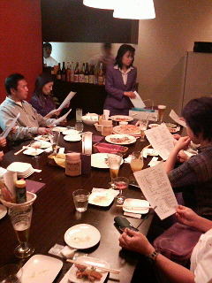 今回の会場は、生パスタ&ダイニング「グラッツェミーレ」(高知市本町2-1-15 TEL:088-871-0058)で、出席者は11名。幹事の真理ちゃんいわく、最近は4〜5人ばあでの開催が多かったみたいやき、珍しゅう大盛況やっちゅうことやったがぜよ。