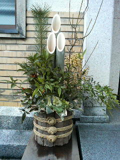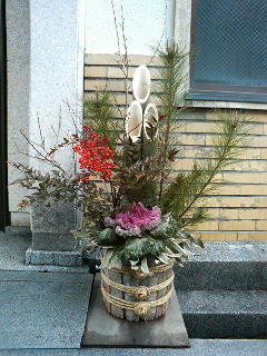 けんど、こうして改めてよう見てみりゃあ、門松っちゅうんはなかなか縁起が良さそうでえいもんじゃのう。せっかくやき、左右両方の門松と、ちくと遠うて見えにくいかもしれんけんど、両方1枚の画像も掲載しちょきますきに。また、縁起がえいついでに、司牡丹の今年の「酒林」(さかばやし)の画像も掲載しちょきますぜよ。