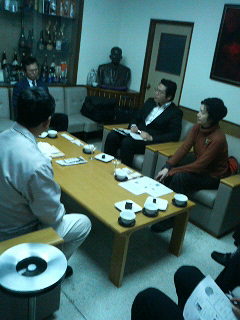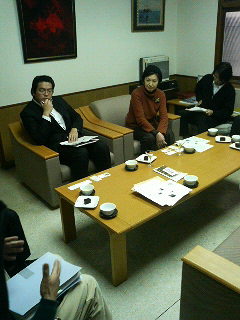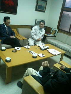 さてまずは、「土佐花番茶ブランド化協議会」の正式メンバーでお茶生産者の岡林さん、佐川町役場の話題さん、オブザーバーの「土佐のお茶研究会」座長の水谷先生が、司牡丹本社の応接室に集まったがよ。そこにちくと遅れて、高知県商工労働部県産品ブランド課の方々3名と、ブランド化企画推進事業の審査員2名の方が到着。審査員のお1人は生活協同組合連合会ユーコープ事業連合(http://www.ucoop.or.jp/)生鮮商品部青果グループシニアバイヤーの石川義光さん、もうお1人は「いいものプロジェクト」で有名な(有)良品工房(http://www.iimono-pro.com/)社長の白田典子さんやったがやき。実は数年前にワシゃあ東京で白田さんの講演を聴かいてもうたことがあって、その際のお礼も含め、ご挨拶さいてもうたがぜよ。