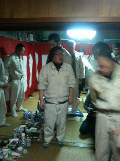 蔵の朝は早いきに、毎日の作業は16時過ぎにゃあ大体終わるがよ。ほんじゃき蔵に合わいて、この日も16時半から蔵の会所場にて、お祝いの宴会やったがぜよ。まずはワシから、蔵人の皆さんの労をねぎろうて、ご挨拶さいてもうたがよ。「今年の新酒も、お客様からの評価はこぢゃんと高うて、えいお酒ができちゅう!ありがとうございましたぜよ!」っちゅうことながやき。ほんで、専務の発声で乾杯して、お祝いの宴会のスタートながぜよ。