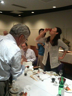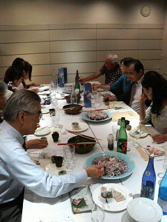 TEL:03-3663-2800)の地下にて、「司牡丹・土佐宇宙酒〈2009〉パーティ」やったがやき。今回のご参加者は、(株)テンアライドの飯野部長さんや、坂本龍馬さんの子孫でもある、チーズプロフェッショナル協会(http://www.cheese-professional.com/)の坂本崇さんらあの11名。