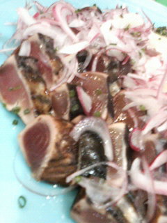 特に初ガツオの塩タタキは、スイカ並みの甘さと言われる土佐清水産・永田農法の赤タマネギ、「足摺レッド」のスライスがタップリかかっちょって、