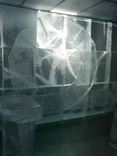 氷は全部、本場とおんなじ、ユッカスヤルウ゛ィのトルネ川から切り出された、こぢゃんと透明度の高い氷だっけが使われちゅうがやと。