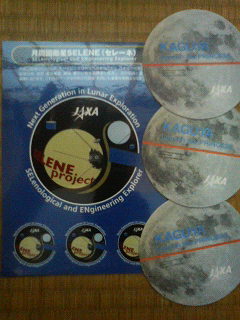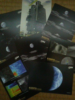 「かぐや」による月や地球の画像の絵ハガキや、「かぐや」のシールやコースター。