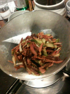 永田農法により土佐清水で栽培されたラッキョウの生と、同じく土佐清水名産・宗田節の生節(一番火)と、長崎さんの野菜らあを使うたサラダを急遽特別に作ってもうたがやけんど、これまたうまいこと、うまいこと!