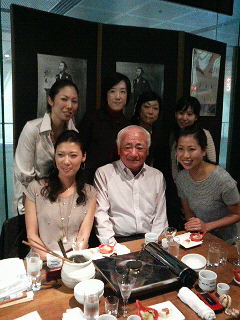 宴席がスタートした途端、早速美女に囲まれて写真を撮られまくりの坂本さん。