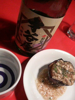 茄子のそぼろ餡掛けにゃあ、スッキリ系の「才谷屋」を合わいてサッパリと!