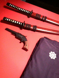 その代わり、龍馬さんの衣装や刀やピストルのレプリカを、展示さいてもうちょったがよ。