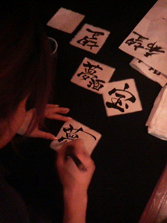 ほんでその後は、紅華先生の親身な指導のもと、ほろ酔い気分のまんまで、世界で1本しかない自分だっけのオリジナル酒のラベル文字を書くっちゅう、まっこと前代未聞の書道教室ながよ。