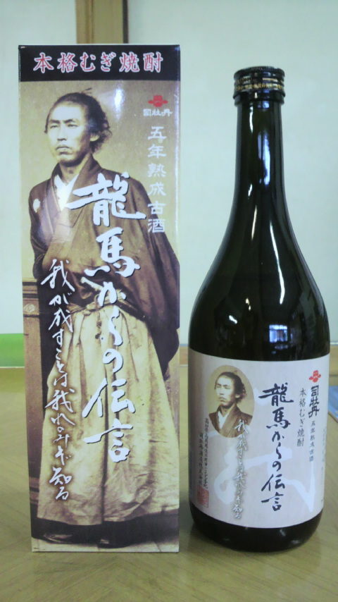 来週1月12日から出荷開始となる新商品が、「龍馬からの伝言・我が成すことは我れのみぞ知る」(本格麦焼酎・五年熟成古酒)ながやき。