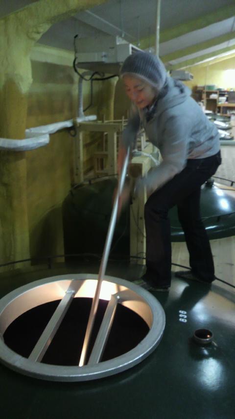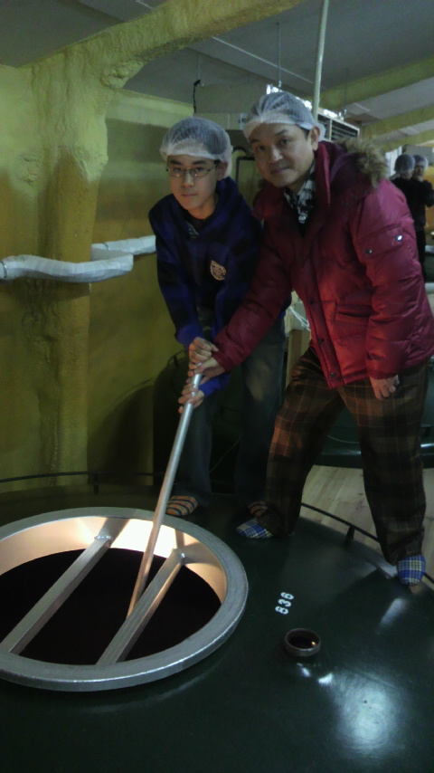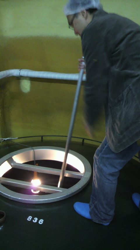 その仕込んだタンクに櫂棒を入れて、混ぜるがやき。