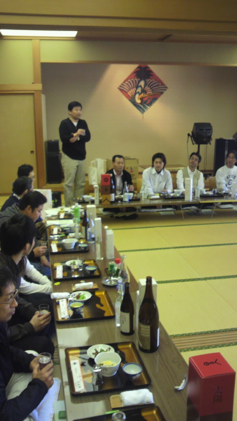 TEL:0889-22-0031)さん2階の座敷に移動。昼食宴会の前に、ちくと会議ながよ。
