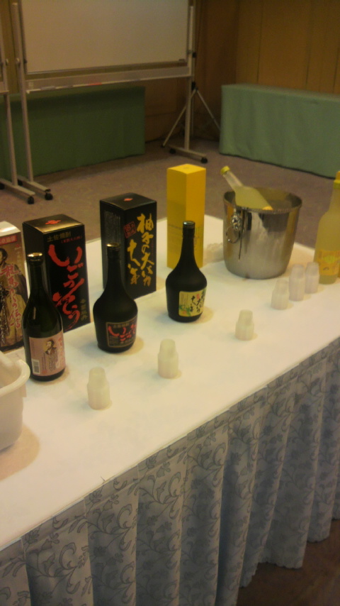 試飲コーナーじゃあ、司牡丹の日本酒23アイテムと、焼酎2アイテム、柚子リキュール2アイテムを準備。