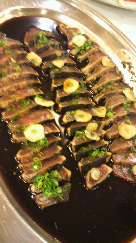 また、燗酒コーナーや、お馴染みの「酒盗」や「川エビの佃煮」らあも準備されたがよ。