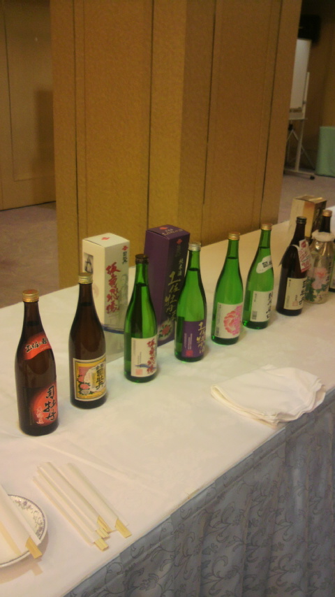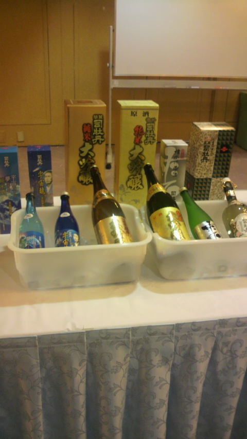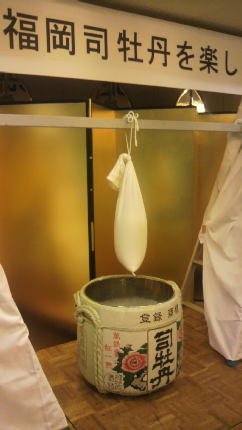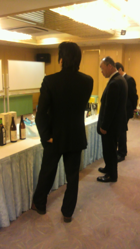 まずは、ワシを含めた司牡丹の社員4名と、日本名門酒会(http://www.meimonshu.jp/)の福岡担当の皆さんらあで、展示物のディスプレイや試飲会場の準備ながよ。