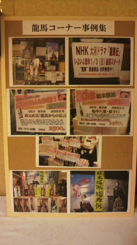 ワシゃあ全国の日本名門酒会加盟店の皆さんの「龍馬コーナー」事例の写真らあを展示。