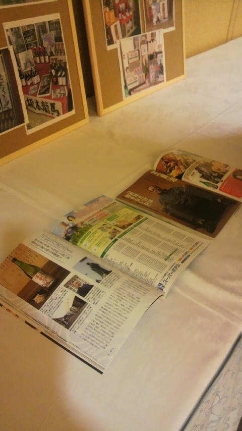 「龍馬と最も縁の深い蔵元・司牡丹」として取材された「旅サライ」や「週刊ポスト」らあも展示さいてもうたがやき。