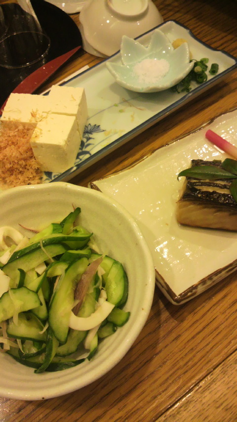 ●前菜:塩イカ胡瓜もみ 土佐の津野山豆腐