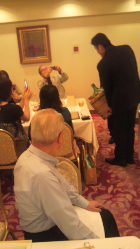 まずはワシから、「大吟醸とは?」「斗瓶囲いとは?」「金賞受賞酒とは?」らあの説明をさいてもうて、皆さんがこぢゃんと盛り上がったところで、雅やかなBGMと共に「司牡丹・大吟醸斗瓶囲い」の入場ながやき!