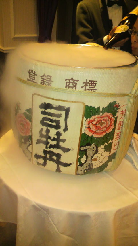 まずはワシから、いかに「斗瓶囲い」が貴重かの解説をさいてもうて、荘厳な雅楽のBGMと共に、うやうやしゅうに「司牡丹・大吟醸斗瓶囲い」の入場!
