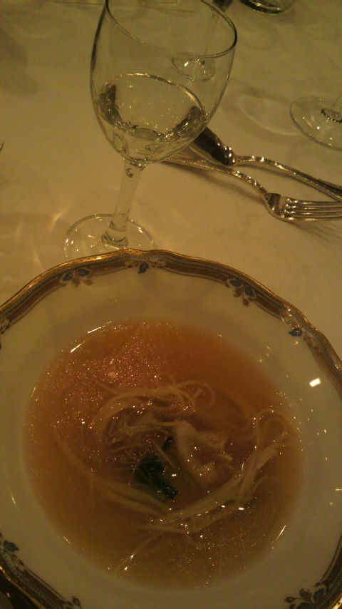 ●高知の思い出 コンソメ バレーヌ 水菜と牛蒡にバミセリ添え