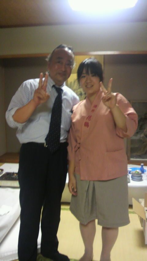 皆さんが帰られて後の後片付けの時に、「花鶴」さんのバイトの女子大生とワシゃあツーショットで、「チーズ!」ぜよ!