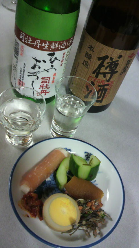 「ひやおろし純米酒」にゃあ、「生ハム大根ロール」や「数の子」「煮玉子」「クウシンサイのナムル風お浸し」「胡瓜の浅漬け」らあがバッチリで、これまた酒も肴も進みまくりで、止まらんなりそうながやき!
