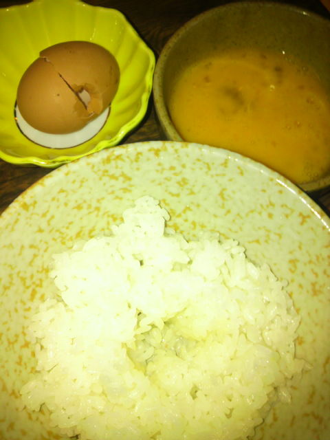 さあ、「塩・卵かけご飯の楽しみ方」に習うて、塩をふった卵を88回かきまぜて、ご飯にくぼみをつくって、いざ投入!