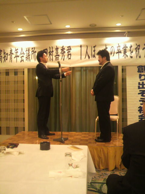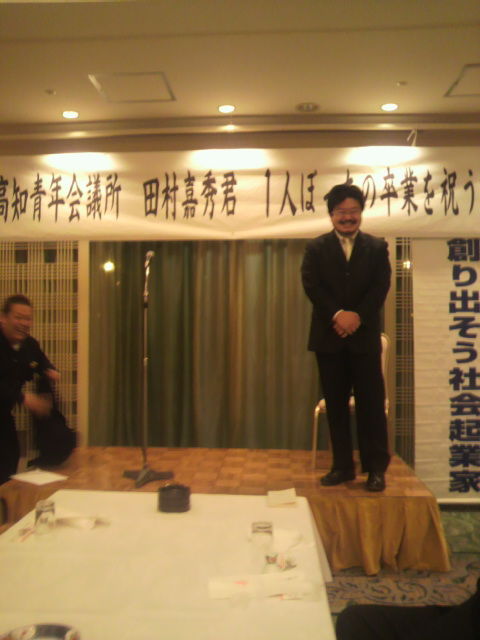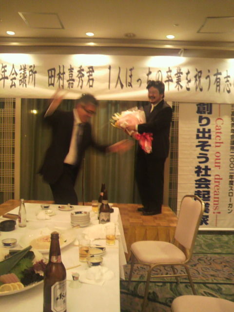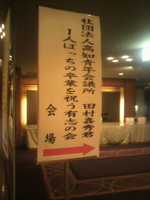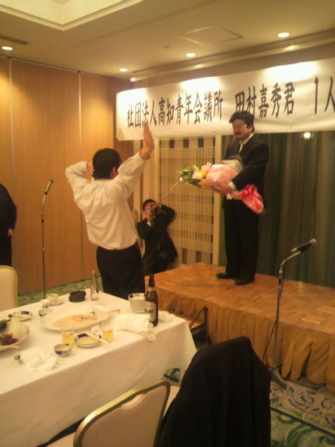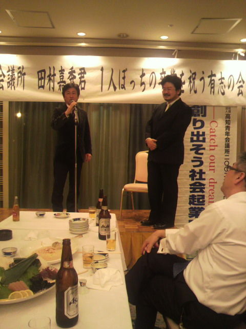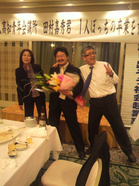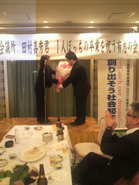 ほんじゃき、田村君が高知JC2002年度の事務局長やった時のワシらあスタッフメンバーが中心となって、カワイソウな田村君のために「ひとりぼっちの卒業式」を開催したっちゅう訳ながよ。