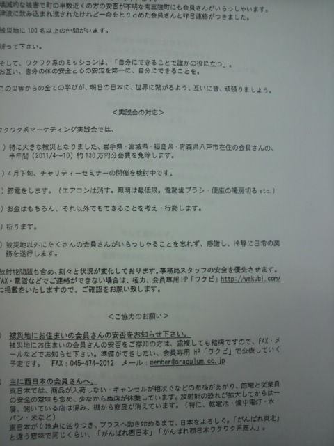 けんど・・・ワシらあの仲間の会員さんは、福島原発の10km圏内にも、壊滅的な被害の南三陸町にもおられ、被災地全体にゃあ100名以上の仲間がおられるそうながよ。