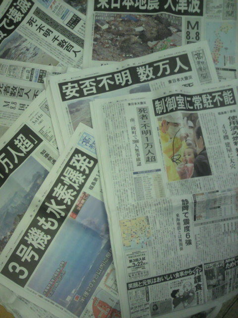 放射能の恐れが拡大してからは一層、開いている店は混み、棚から商品が消えています。(特に、乾電池・懐中電灯・水・パン・米など)