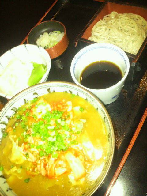 名物のキムチカレー丼と蕎麦のセットをいただいたがやき。