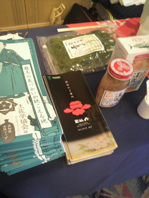 「船中八策」(超辛口・純米酒)、「船中八策・零下生酒」(超辛口・純米生酒)、「船中八策・薄にごり生酒」(超辛口・純米薄にごり生酒)、「司牡丹・封印酒」(純米吟醸酒)、「司牡丹・山柚子搾り・ゆずの酒」(リキュール)、どのお酒も好評で、全部を試飲されるお客様も相当いらっしゃり、いずれもほぼ均等にのうなっていったがよ。