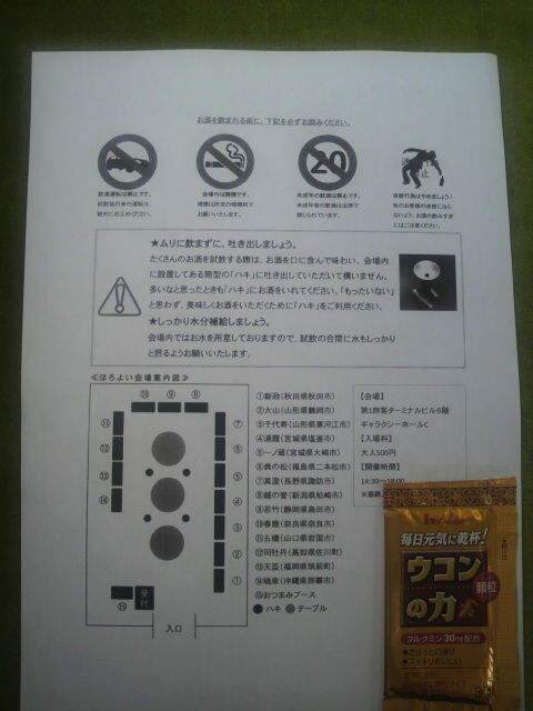 さらにご参加者に渡されるお品書きにゃあ「ウコンの力」(顆粒)付きと、至れり尽くせりながやき。