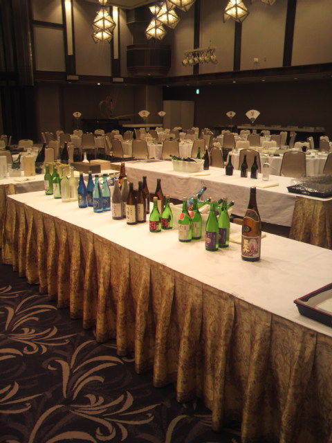 まずはオンテーブルの城西館さんのお料理と司牡丹をご堪能いただき、しばらくすりゃあ、司牡丹のお酒がズラリと並ぶ「司牡丹コーナー」にも、次々とお客様にお越しいただいたがやき。