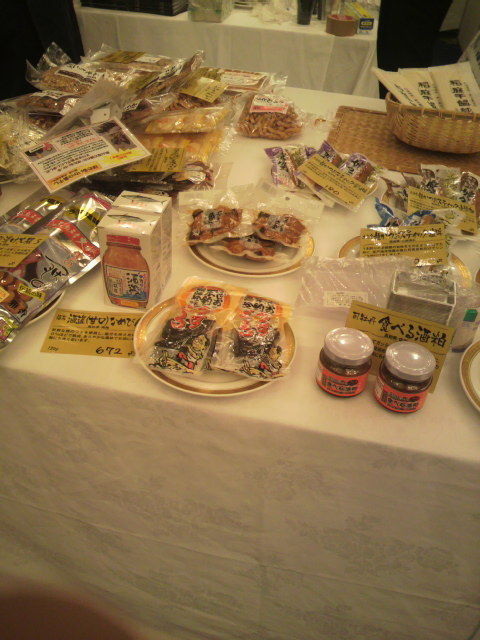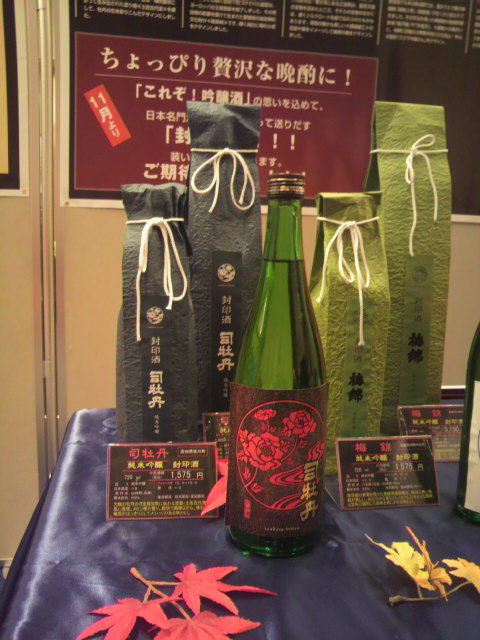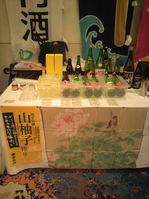 司牡丹ブースは、「船中八策」「船中八策ひやおろし」「司牡丹・本醸造ひやおろし」「司牡丹 花 純米」「司牡丹MOTOZAKE」「司牡丹・土佐の燗杯」の日本酒6アイテムと、「司牡丹・山柚子搾り・ゆずの酒」のリキュール1アイテムの、合計7アイテムの出品と、試食用に「司牡丹・食べる酒粕」も出品さいてもうたがやき。