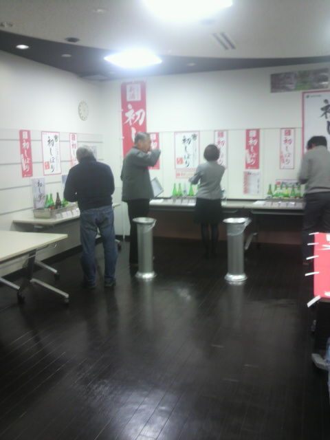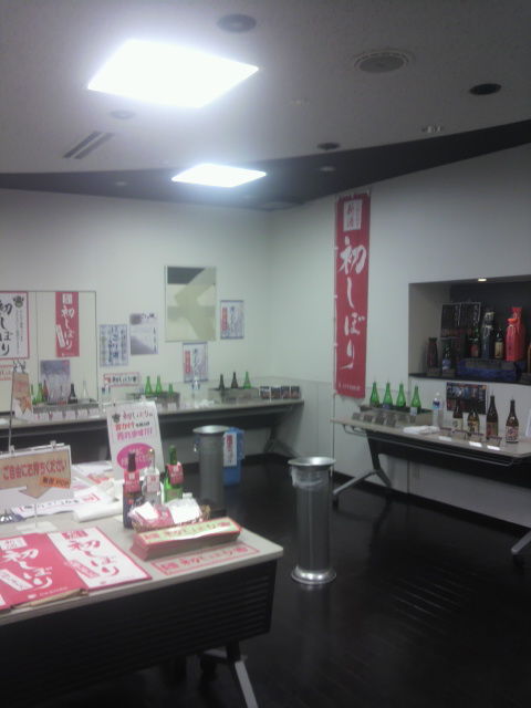 地下の会場に向こうて、早速まずは本醸造の初しぼり8種類の利き酒。