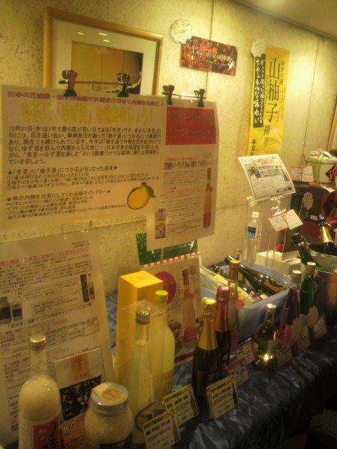 他にも「グレイスワイン」さん、「船中八策・樽酒」も含む「ギフト」やお歳暮商品のディスプレイ、「お正月商品」、「司牡丹・山柚子搾り」を含む「冬至の柚子酒」コーナー、「スパークリングSAKE」コーナー、「あま酒」コーナー、「みりん+屠蘇酒」コーナーらあと、こぢゃんと充実しちょったがよ。