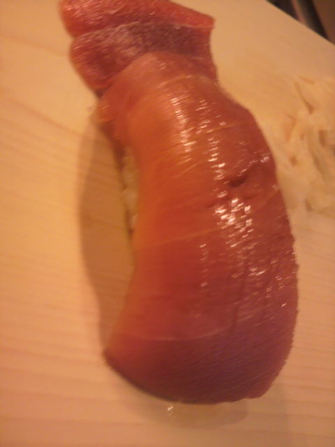 その後のマグロも絶品で、「船中八策」のぬる燗がマグロの脂分を心地よう流してくれて、交互にやりゃあ止まらんなるがやき。
