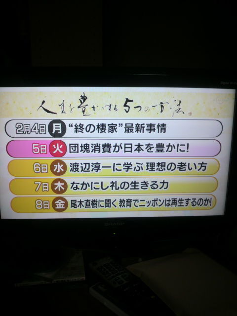 番組じゃあ、この前日の2月4日(月)から2月8日(金)までの5日間、「人生を豊かにする5つの方法」っちゅうタイトルで、5つのテーマを毎回取り上げて紹介しよって、その2日目の今回は、第2弾として「団塊消費で日本を元気に」っちゅうテーマやったがよ。