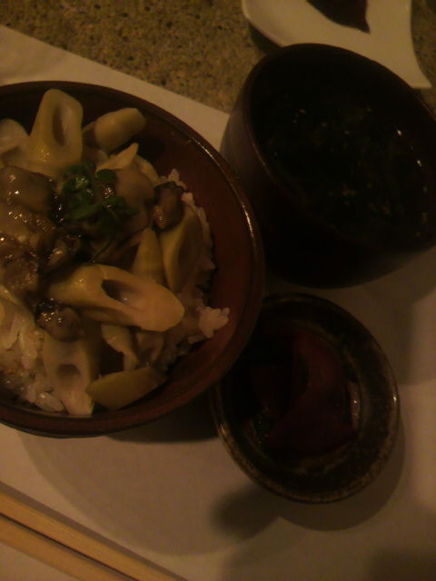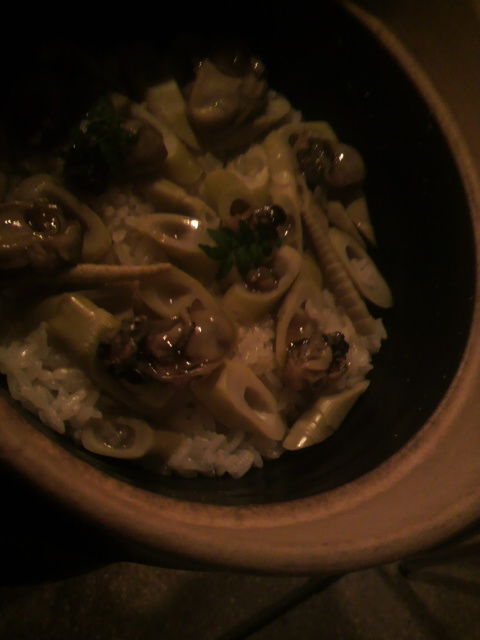 高知県産の地牡蠣と四方竹の炊き込みご飯を注文。